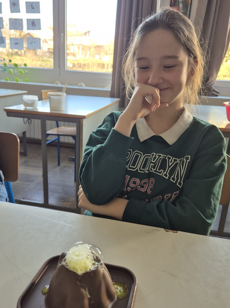 Nakon teorije i gradnje, uslijedio je najzabavniji dio. Koristeći jednostavne kemijske reakcije, svaki je učenik pokrenuo “erupciju” iz vulkana. Gledati kako “lava” teče niz obronke vulkana bilo je neprocjenjivo iskustvo koje je na najbolji način povezalo znanje i zabavu.